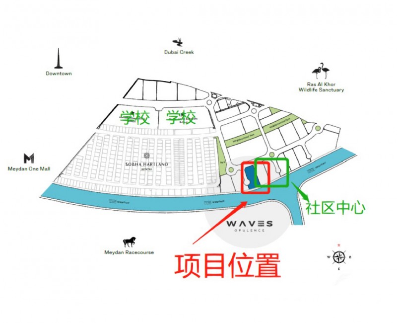 首霸打造的Sobha Hartland首霸心领地项目,与迪拜市中心一路之隔,属于闹市中的一片宁静之隅。