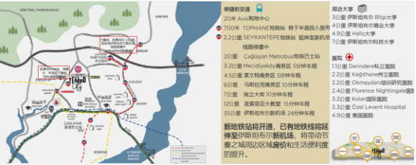 教育资源丰沛,邻近伊斯坦布尔商业大学、伊斯坦布尔科技大学、英国国际学校等;