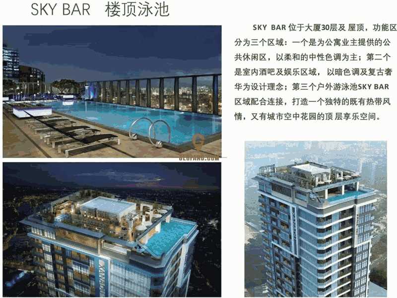 11-29层,4梯13户,户户有景观,25层以上拥有金边绝美城市和湄公河景观,所有重要的旅游景点和金边地标都在项目2公里范围内。30-31层顶拥有高端顶级的SKY BAR和无边际泳池,欣赏日升日落,俯瞰湄公河景,畅游城市高空,品味都市夜景。