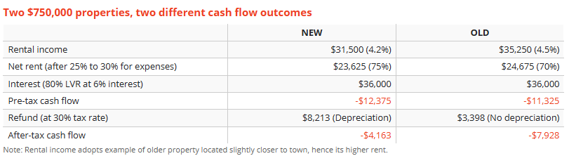 这一原则常令人意外。部分投资专家推崇老旧房产,因其表面收益率更高。但细算现金流账目,新房几乎总是胜出。我不选择旧房原因有三:维护成本不确定且波动大;无法通过折旧抵税持有成本。我宁愿牺牲0.5%的租金收益率换取新房优势。以75万澳元同级房产为例: